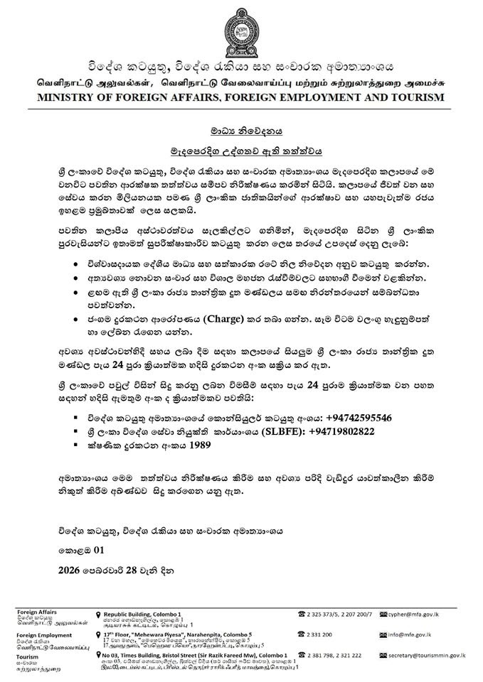 එක්සත් අරාබි එමීර් රාජ්යයේ වෙසෙන ශ්රී ලාංකික මහත්ම මහත්මීනි ඔබ සහ ඔබගේ පවුල් ආරක්ෂිතව හා හොඳින් සිටිනු ඇතැයි මම බලාපොරොත්තු වෙමි. එක්සත් අරාබි එමීර් රාජ්යය [...]